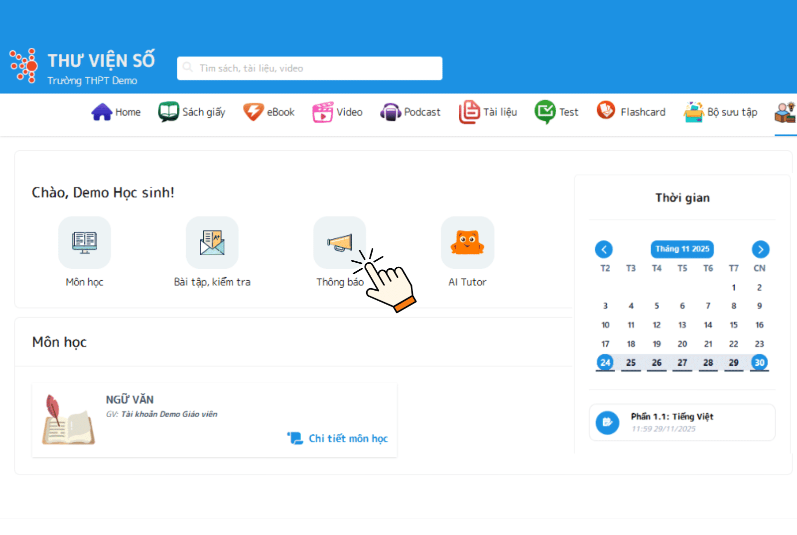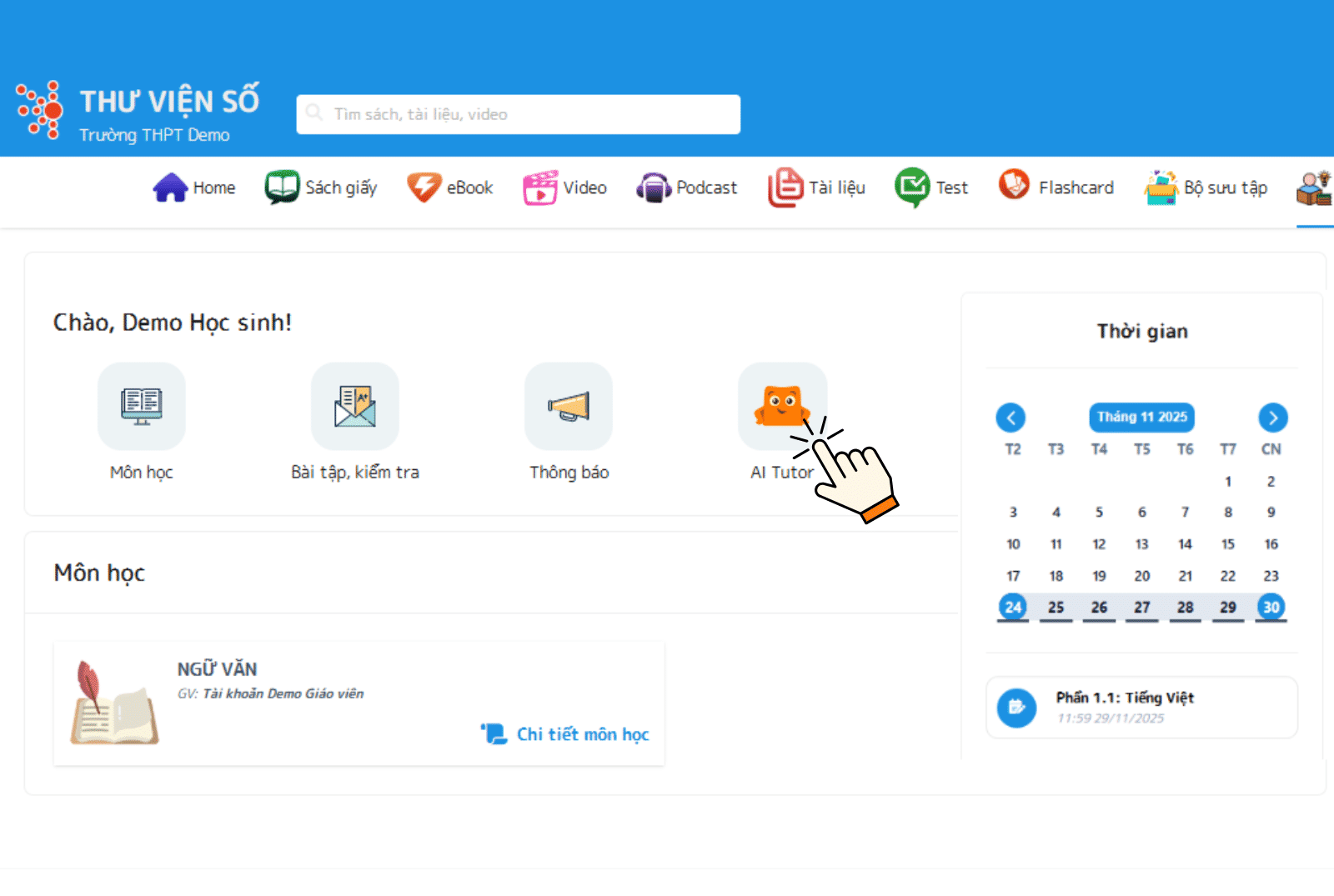 Ngoài ra, hệ thống LMS cho phép học sinh ôn luyện kiến thức mọi lúc, mọi nơi thông qua các bài học và bài tập điện tử. Khi gặp khó khăn, học sinh có thể sử dụng công cụ AI Tutor để đặt câu hỏi và nhận được hỗ trợ nhanh chóng, chính xác.